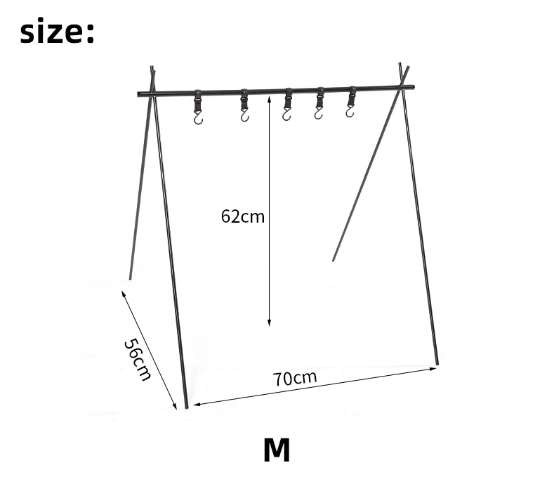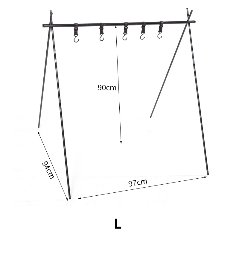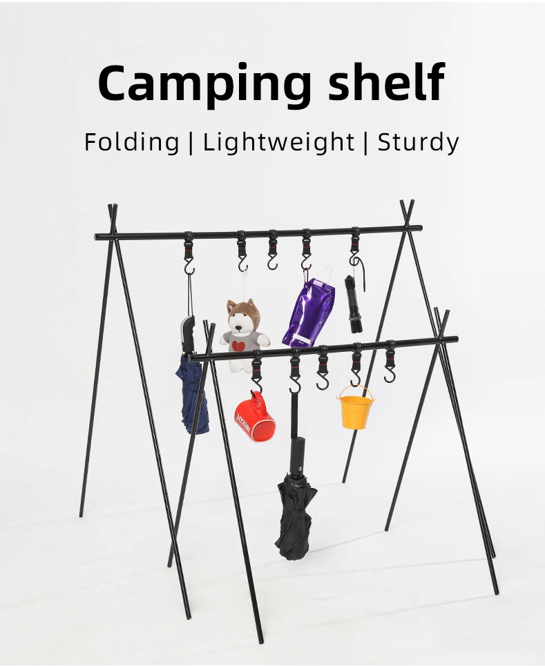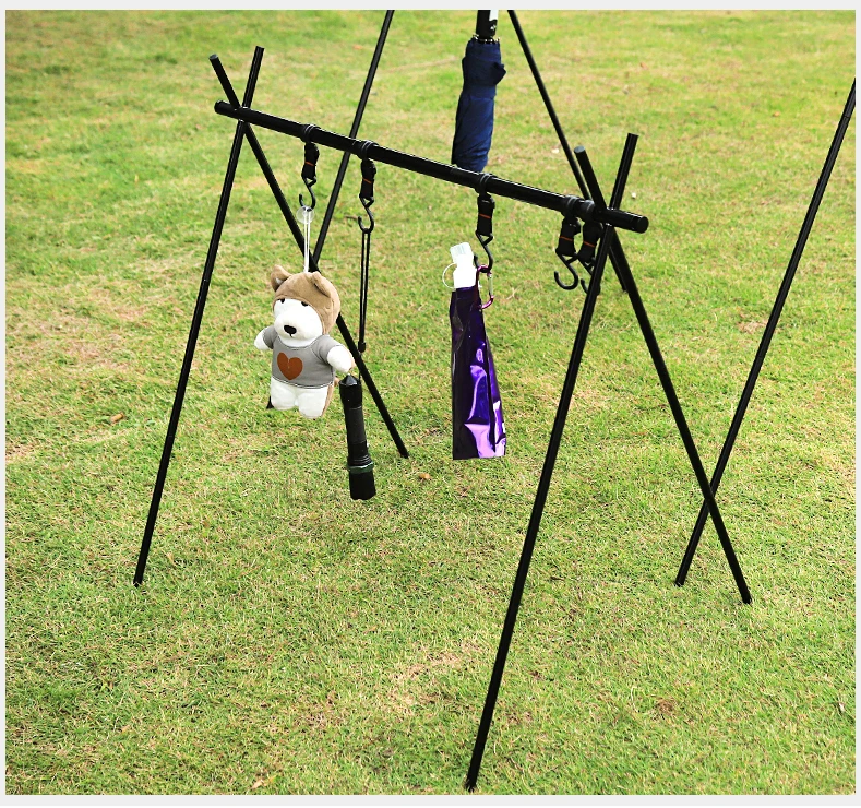 - Functions: The hanging rack is ideal for outdoor camping use, great for hanging pots and pans, lanterns, tea coffee pot, clothes, BBQ, courtyard, campfire party.