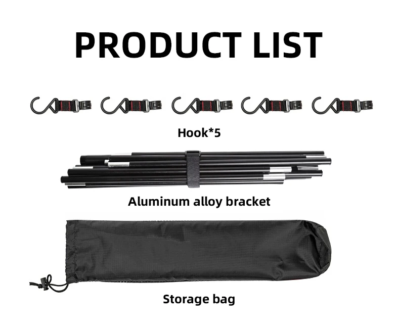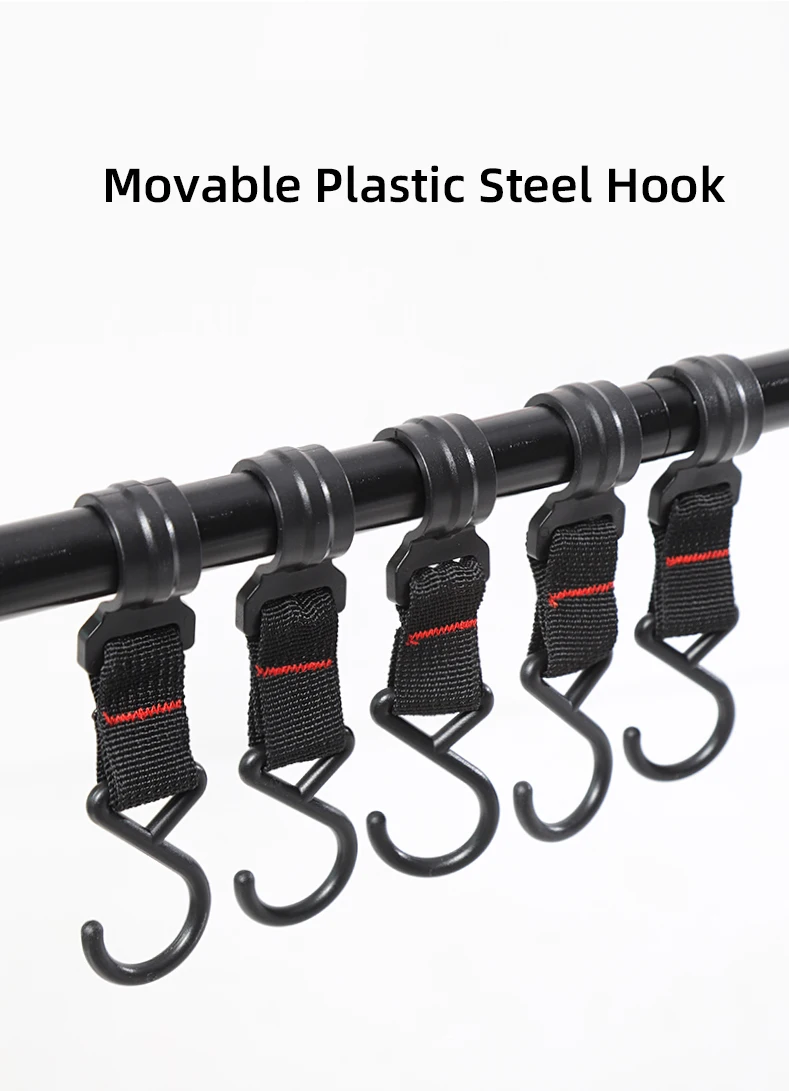 - Material: Main body is made of high-strength aluminum alloy, strong and lightweight, anodized surface, anti-rust and wear-resistant, long usage lifespan, with 5 plastic steel hooks.